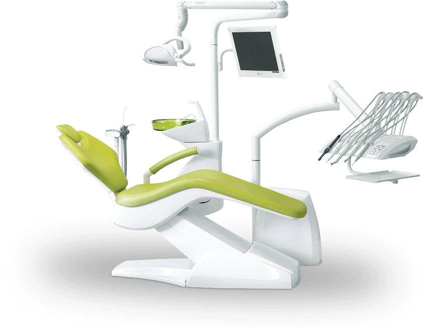Блок питания, пантографическое плечо с модулем врача, светильник и блок плевательницы прикреплены к основанию кресла для того, чтобы обеспечить лёгкий доступ и максимальный комфорт для стоматолога и пациента.